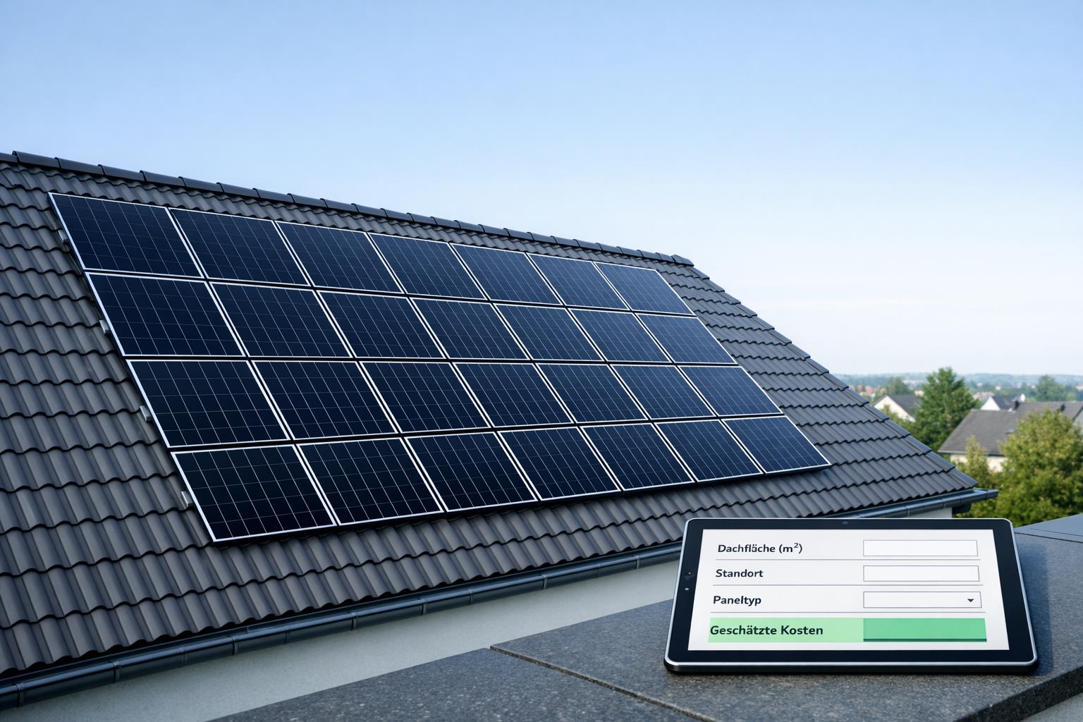 Berechnen Sie die Kosten für Solarpanels auf Ihrem Dach! Geben Sie einfach Größe, Standort und Paneltyp ein und erhalten Sie eine detaillierte Schätzung.
